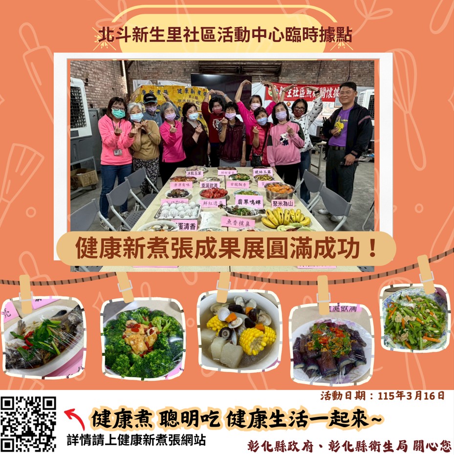 彰化縣北斗衛生所115年3月16日於新生里社區活動中心臨時據點舉行健康新煮張課程活動,共計10名學員完成課程
